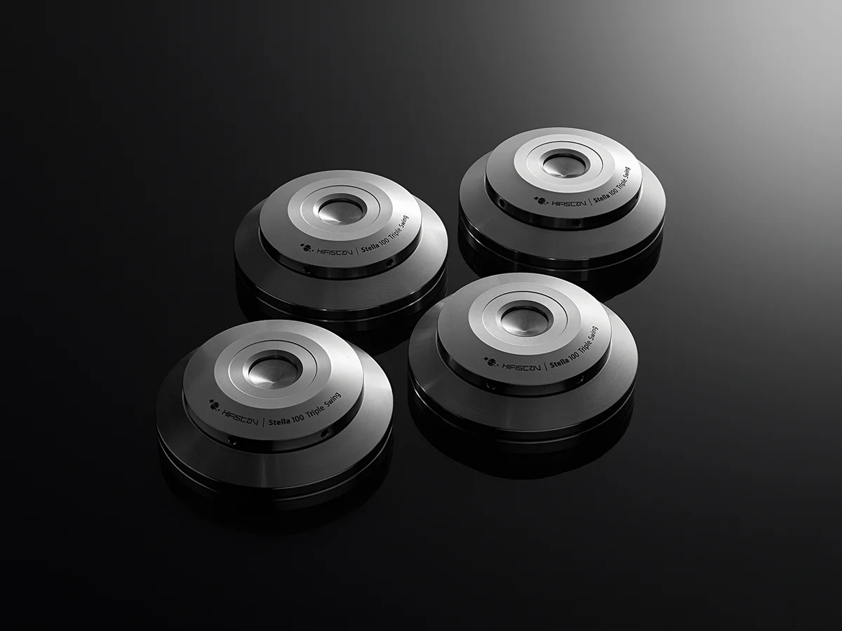 At the heart of the Stella Series is its innovative Swing Technology. This system uses a multi-layer structure with precision ceramic ball bearings that allow the equipment to “float” while maintaining stability. Unlike traditional rigid spikes or basic damping pads, this approach minimizes floor-borne and structural vibrations without compressing the sound. The result is a clearer, more detailed presentation across all frequencies, with improved stereo imaging, deeper soundstage layering, and better tonal accuracy.